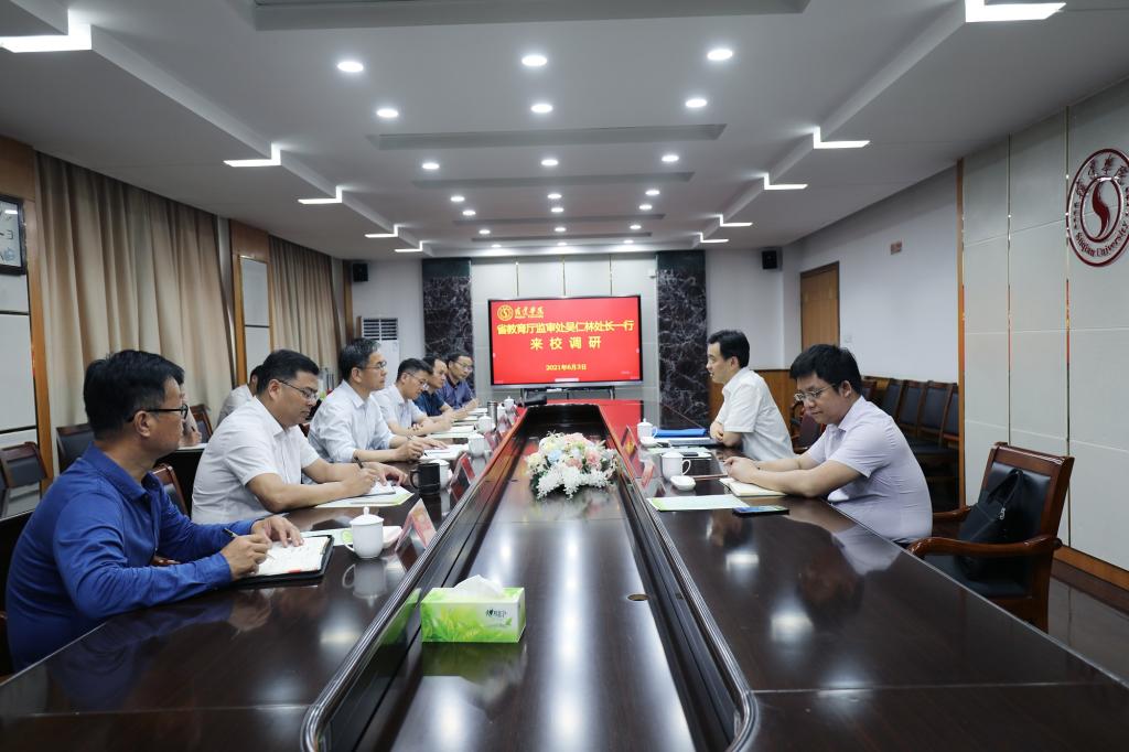 为切实推动我校省委巡视发现问题整改、省教育厅专项审计工作顺利推进以及我校内部审计高质量开展,6月3日,省教育厅监审处吴仁林处长一行来我校开展调研活动。
